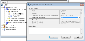 Pour activer le journal du référentiel de travail et de la base système :