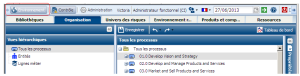 Des arborescences permettent d’accéder à toutes les entités et processus de l’organisation.
