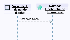 L'instance de message envoyée par le rôle "Saisie de la demande d’achat" au "Service Recherche de fournisseurs" transporte l'instance de message "Nom de la pièce".
