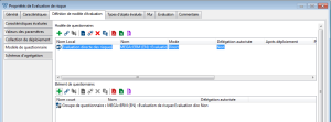 Le nouveau modèle de questionnaire apparaît dans la page de propriétés du modèle d'évaluation, onglet Définition du modèle d’évaluation, sous-onglet Modèle de questionnaire.