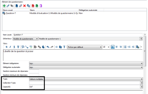 Dans la fenêtre de propriétés d’une question vous pouvez choisir le Type de réponse que vous souhaitez proposer dans votre questionnaire.