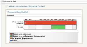 La couleur de la période de la mission de conformité est fonction du nombre de ressources qui lui sont affectées par rapport au nombre de ressources estimé :