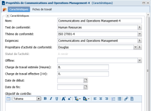 2. Ouvrez la fenêtre de propriétés de l’activité de conformité concernée.