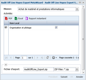 La fenêtre d’export apparaît. Elle présente la liste des activités de la mission d’audit qui vous sont affectées.