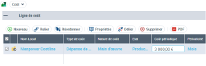 4. A la ligne de coût sont associées des colonnes spécifiques à la dépense périodique :