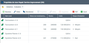 La liste des évaluations de l’ensemble des objets liés aux initiatives du portefeuille sur les différents critères s’affiche.