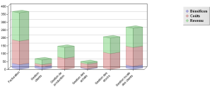 L’exemple ci-dessous permet de visualiser la répartition des coûts, des bénéfices et des revenus pour les différentes applications métier.