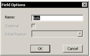 In order to be referenced at programming, each shape object must first be identified by a name. This naming can be via the "Field Options" command in the pop-up menu of each object. The name should be prefixed and suffixed by "&".