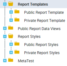 • Report Templates, which are classified by their sharing characteristics (private or public). You can add sub-folders for a more precise Report Template classification.