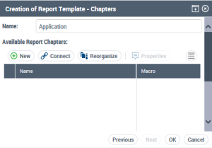 To build your report chapters, you can use an existing macro, provided that parameters are compatible.