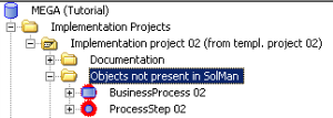 HOPEX SAP Blueprint. The objects deleted in SAP Solution Manager are therefore still present and in their original place in