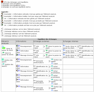 Le rapport ci-dessous présente un agent équilibré, "Gérer le panier du client", et un agent qui n’est pas équilibré, "Gérer le panier du client", dont la structure interne n’est pas décrite.