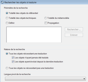 Périmètre de la recherche, définissez le périmètre de recherche des objets non traduits :