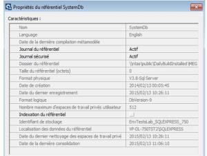 • la Date de la dernière compilation métamodèle (spécifique référentiel SystemDb)