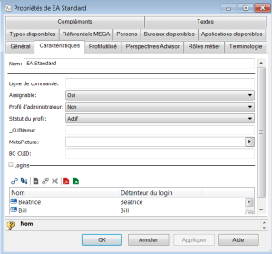 Pour des informations détaillées sur les caractéristiques d’un profil, voir