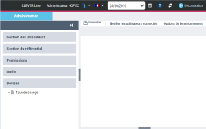 Dans le bureau d’Administration, vous pouvez en particulier effectuer les opérations d’administration suivantes :