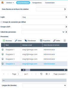 • sur un des sous-dossiers de classement (Groupes de personnes par profil, Groupes de personnes par zone d’accès en écriture, ou Groupes de personnes par zone d’accès en lecture) puis dans la zone d’édition cliquez sur le Profil, la Zone d’accès en écriture ou la Zone d’accès en lecture concerné.