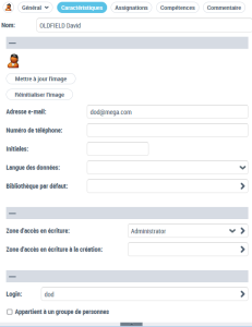 nom, zone d’accès en écriture, login et adresse e-mail sont renseignés et un profil est assigné à la personne.