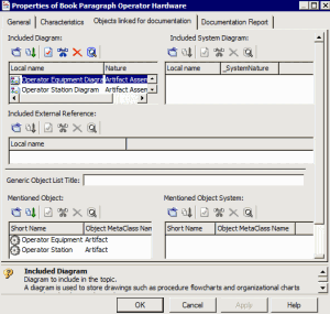 1. Open the properties dialog box of the paragraph and select the Objects linked for documentation tab.