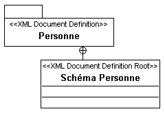 Si vous créez la classe dans le diagramme et positionnez le stéréotype à la main, le paquetage détenteur n'est pas modifié pour avoir le stéréotype "XML Document Definition". Il est donc conseillé de suivre l'une des deux procédures citées plus haut.