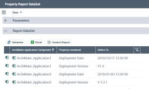 The corresponding Report DataSet presents all the properties of the selected objects: