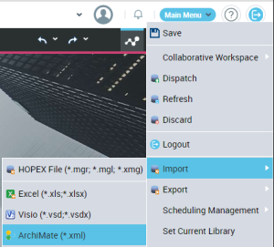 The ArchiMate import feature is available with HOPEX ArchiMate and supports ArchiMate 3.0/3.0.1 models.