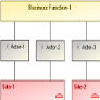 An Organization Decomposition diagram describes the links between actor, roles, and location within an organization tree.