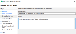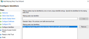 11. In the Configure Identifiers page, enter the Relying party trust identifier: