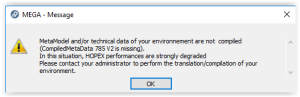 I get a message 'MetaModel and/or technical data of your environment are not compiled (XXX is missing) .... Please contact your administrator to perform the translation/compilation of your environment.