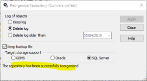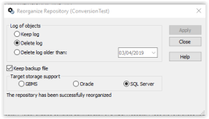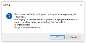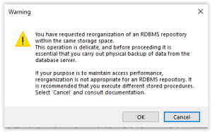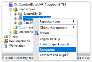 HOPEX Administration: Administrator Guide : Managing Repositories : Managing Repositories : Reorganizing an RDBMS Repository