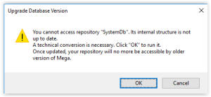 With specific version upgrades, the technical format of the repository can change. As explained, you need to run a menu (Perform SQL conversion on the repository) from the Administration Console. See earlier in this document.