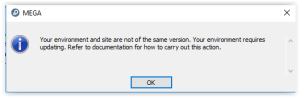 Warning 'To perform this action, the minimum version required for you environment is HOPEX V2R1 Update2…'