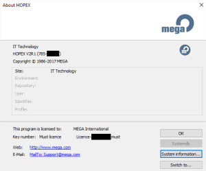 On the server, run MEGA Administration Console (Administration.exe). Click the menu "Help" > "About MEGA" and check the license used. It must be the MUST license name generated for this installation.