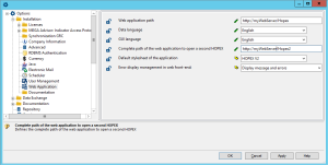 http://myWebServer/HOPEX/) and “Complete path of the web application to open a second HOPEX”, are already filled-in by the setup. However, you may have to change it if a DNS alias is put in place after the setup, or if your web servers are behind a Load Balancer or a reverse-proxy that has a different address than the server name itself: