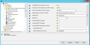 o Any SMTP configuration (port, SSL, authentication, etc.) required by your infrastructure