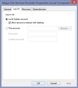 2. Make sure that the account that runs the “Mega Site Service Provider” Windows service has the same access level.