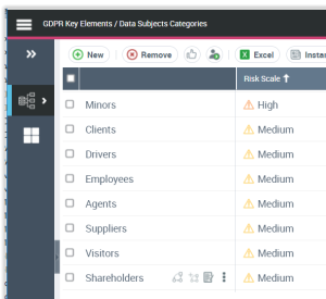 1. In the navigation menu, click GDPR Key elements > Data Subject Categories.