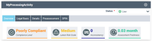 After you performed the DPIA, the Overview tab of the processing activity property page displays a dashboard with updated results.