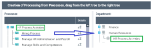 - you drag-and-drop one of these sub-processes under a department in the right tree.