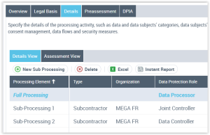 • (optional) create sub-processing activities and enter the information which differs from that entered on the general processing activity.