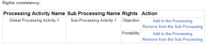 Add to the processing.To remove a data subject right or a data transfer from the general processing: