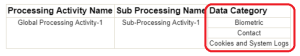3. Compare the data subjects and data categories entered at the processing activity and sub-processing level.