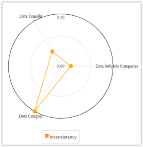 The Inconsistency dashboard analyses the inconsistencies between the general processing activities and the sub-processing activities in terms of: