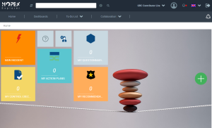 The home page HOPEX Explorer provides tiles that you can use to perform the most common tasks on the objects that you work with.