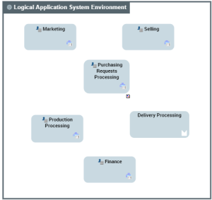 The components of a logical application system environment are presented in an application system environment diagram that describes the internal logical application systems as well as the partner logical application systems.