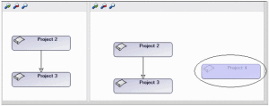 HOPEX allows you to compare several states of the same diagram in time. The diagram has been photographed at different moments at creation of repository snapshots.