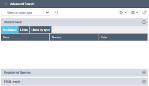 By default, on first opening the window, the advanced search appears in Wizard Mode.