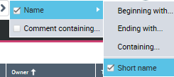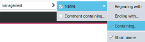 By default, the search deals with the objects of the selected type and whose short name starts with the character string entered.