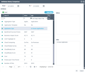 All of the object attributes (/links) are listed with their value before and after modification on the current day.