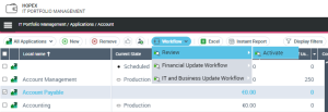 You can select more than one object and move these objects on to the next workflow step if these objects all have the same status. To do this, click on the workflow button and select